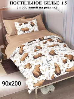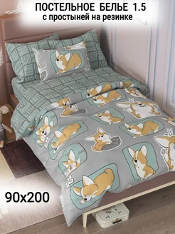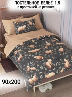 Постельное белье 1.5 спальное c простыней на резинке 90х200