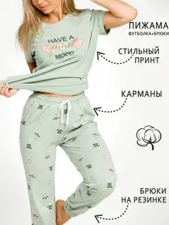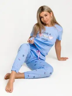 Пижама с длинными штанами и футболкой с коротким рукавом