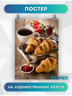 Постер на стену чай, булочки и клубника на столе 30х40 см