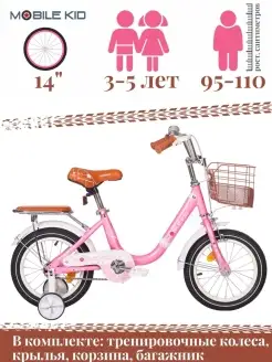 Велосипед для девочек и мальчиков двухколесный 14 дюймов