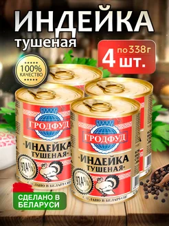 Тушенка белорусская, Индейка тушеная, 4 шт по 338 гр