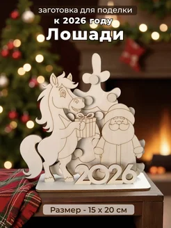Деревянная заготовка для поделки Елка Дед Мороз лошадка 2026