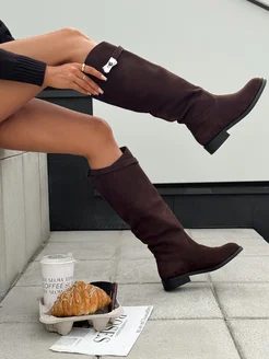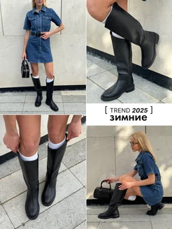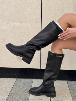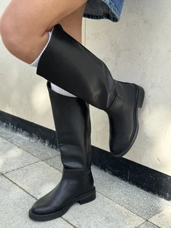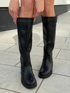 Демисезонные сапоги трубы высокие длинные широким голенищем