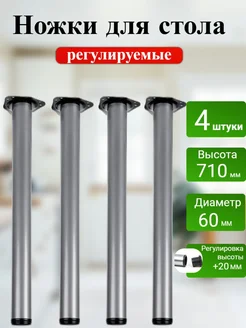Ножки для стола регулируемые 710 мм (71 см) хром, 4 шт