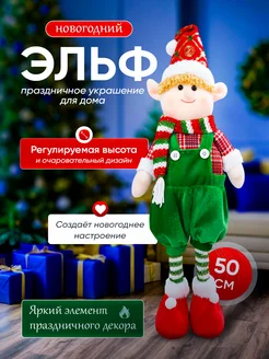 Новогодняя игрушка Эльф с телескопическими ножками 40см
