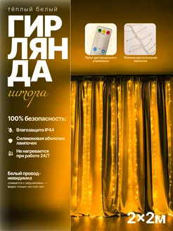 Гирлянда новогодняя 2х2 теплый свет с пультом