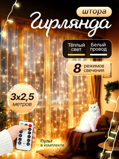 Гирлянда новогодняя 3х2.5м теплый свет с пультом