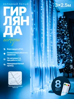 Гирлянда новогодняя 3х2.5м холодный свет с пультом
