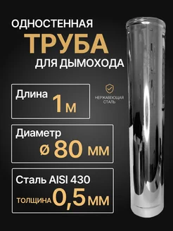 Труба одностенная для дымохода 1 м D 80 мм (0,5 430) нерж
