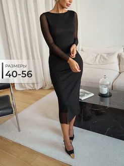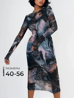Платье в сетку миди вечернее