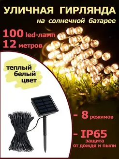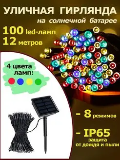 Гирлянда уличная Огоньки на солнечной батарее 100 led