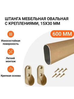 Штанга-вешалка овальная с креплениями 30X15 мм L-600 мм