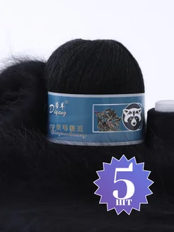 Пряжа 5шт пух норки синяя этикетка, черный 811 Diyang
