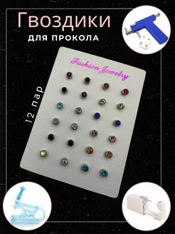 Серьги гвоздики бижутерия 12 пар