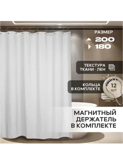 Штора для ванной комнаты тканевая 180х200 см,текстура льна