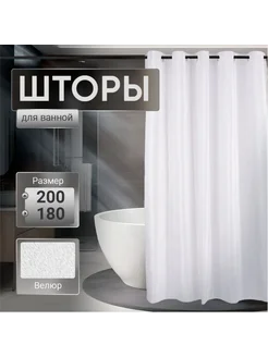 Штора для ванной тканевая на кольцах "Велюр" 180х200