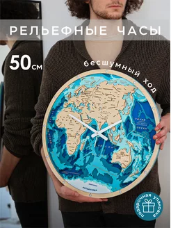 Часы настенные бесшумные Карта Мира, 50см