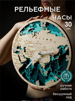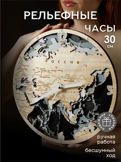 Часы настенные бесшумные "Карта России - Евразии", STANDART