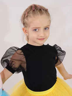 Черная футболка с рукавами фонариками праздничная Уэнсдей