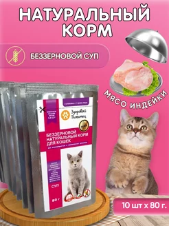 Беззерновой корм суп для кошек,индейка,овощи 10шт по 80г