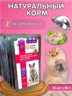 Беззерновой супчик для кошек,мясо курицы,овощи 10шт по 80г