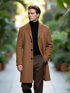 Пальто мужское длинное демисезонное оверсайз коричневое