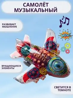 Развивающий музыкальный самолет с шестеренками прозрачный