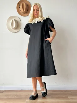 Платье хлопковое оверсайз с воротником жабо