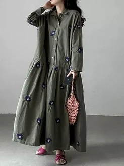 Платье хлопковое оверсайз с вышивкой