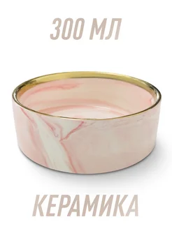 Миска для кошки керамика Розовый мрамор Золото, 300 мл