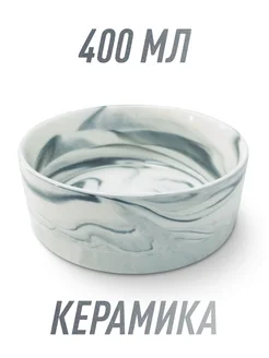 Двойная Миска для кошки керамика Белый Мрамор, 300 мл х 2 шт