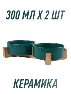 Двойная миска для кошки керамика Зеленый, 300мл х 2шт
