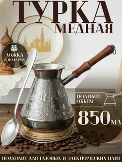 Турка для кофе медная 500 мл с ложкой
