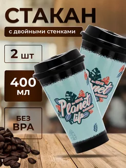 Пластиковый стакан с крышкой многоразовый 400 мл 2 шт