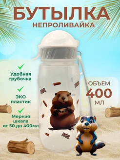 Пластиковая бутылка для воды с трубочкой 400 мл