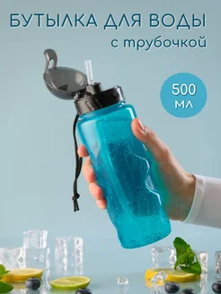 Пластиковая спортивная бутылка для воды с трубочкой 0,5л