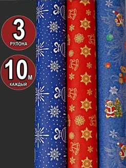 Упаковочная бумага новогодняя для подарков 3 рулона по 10м