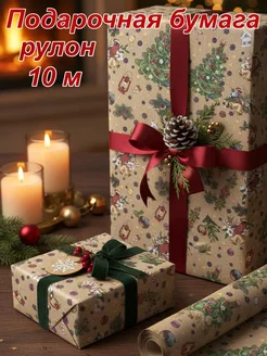 Упаковочная бумага для подарков новогодняя рулон 10м