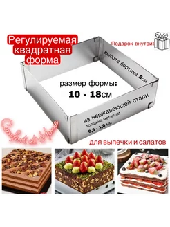 Форма для запекания выпечки квадратная разъемная раздвижная