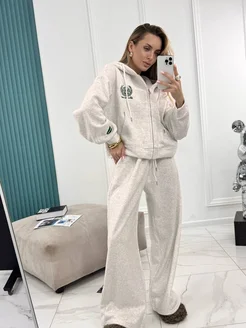Костюм спортивный оверсайз со штанами палаццо и зип худи