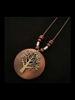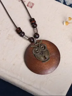 Длинное деревянное колье на шею с подвеской бохо этно