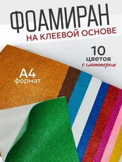 Фоамиран самоклеящийся с глиттером 20*30 cм, 10 цветов