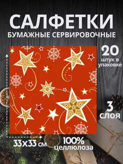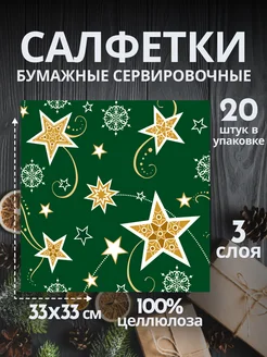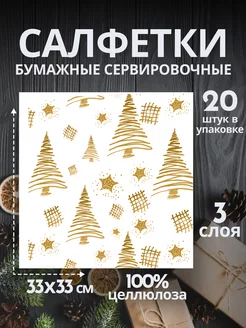 Салфетки бумажные праздничные Снежинки золото+серебро