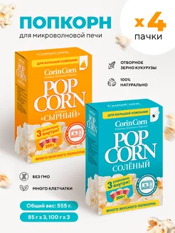 Попкорн для свч сырный, солёный 3 в 1 85г, 4 набора по 3 шт
