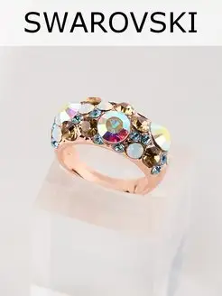 Широкое позолоченное кольцо Калейдоскоп с камнями Swarovski