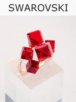 Широкое кольцо-перстень Мираж с кубиками Swarovski