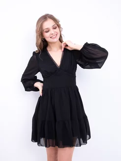 Платье черное новогоднее на корпоратив шифон