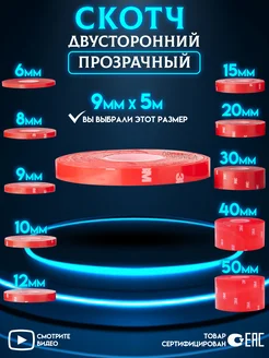 Двухсторонний скотч Прозрачный Ширина 9мм