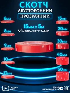 Двухсторонний скотч Прозрачный Ширина 15мм