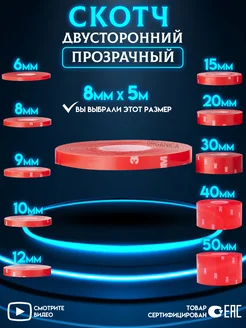 Двухсторонний скотч Прозрачный Ширина 8мм